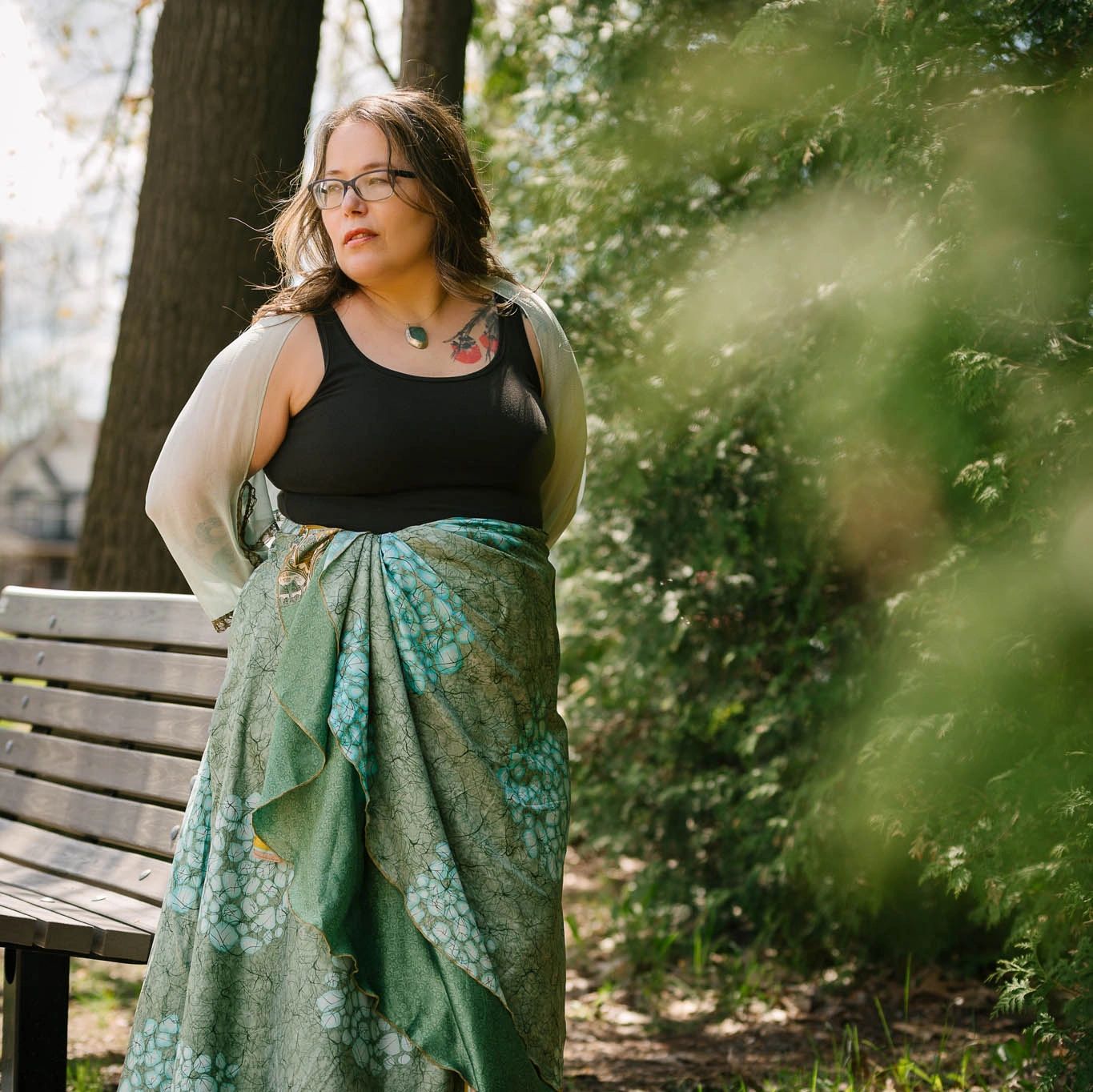 Fondatrice de la marque de vêtements Skirties, Claude-Hélène confectionne de soyeuses jupes faites de saris indiens recyclés réversibles et qui avantagent toutes les silhouettes.